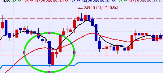 if CrossDown(L,var1) and c > var1 Then