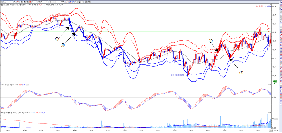일정 추세에서 상승시 고점대비 38.2%의 조정이 발생했을 때 1파가 그려지고 (상승시 ①번), 조정시 몇%까지 조정을 주었는지 표시가 되었으면 합니다.
