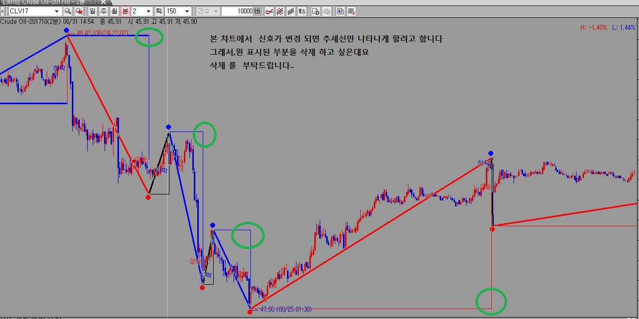 if trnd[1] == dnTr and trnd == upTr then { //추세가 하락에서 상승으로 바뀌었을 경우