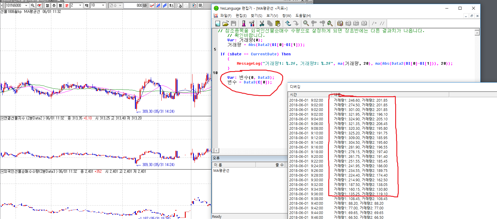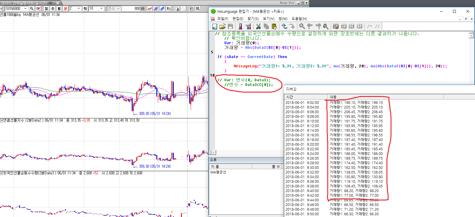 MessageLog("거래량 1: %.2f. 거래량2 : %.2f",data2(ma(거래량,20)),data2(ma(abs(OI-OI[1]),20)));