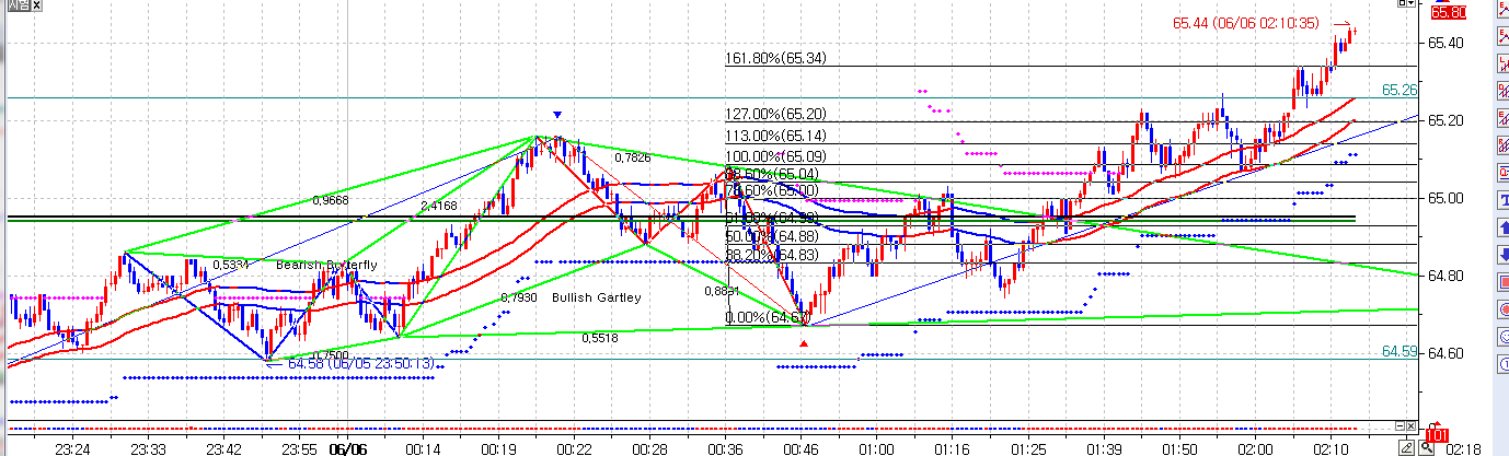 > 패턴이 완성된후 그림과같이 피보나치 라인이 나타나게 수식부탁드립니다