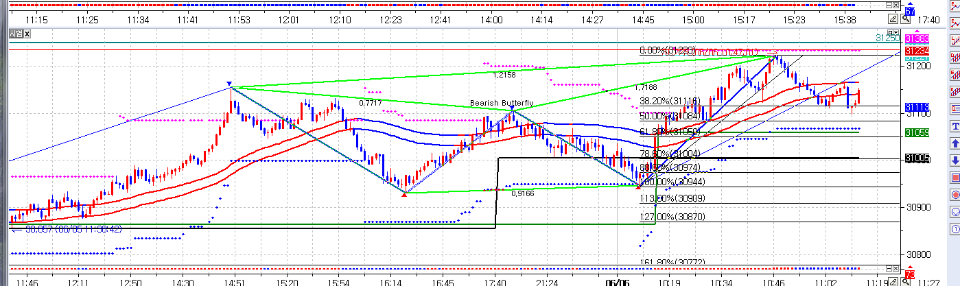 패턴이 완성된후 그림과같이 피보나치 라인이 나타나게 수식부탁드립니다