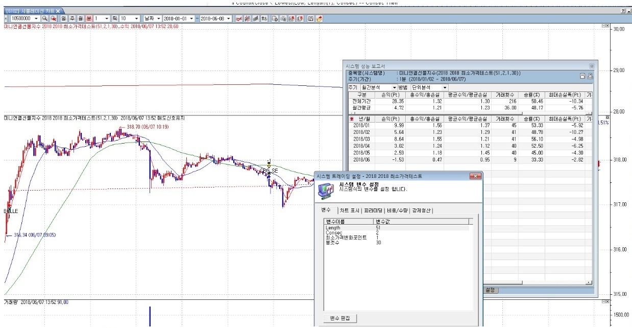 input:최소가격변화포인트(0.5), 봉갯수(50)
