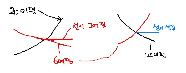 20이평이 60이평 상승이면 빨간선이 발생하고 반대인 경우는 파란선이 발생합니다.
