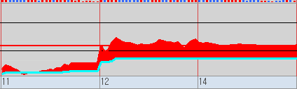 첨부된 그림과 같이 지표속성의 차트표시탭 하단의 채우기 기능이용하시면 됩니다.