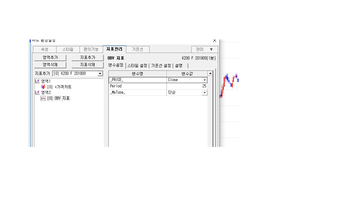 > 제목 : OBV 지표 생성 수식 부탁 드립니다.