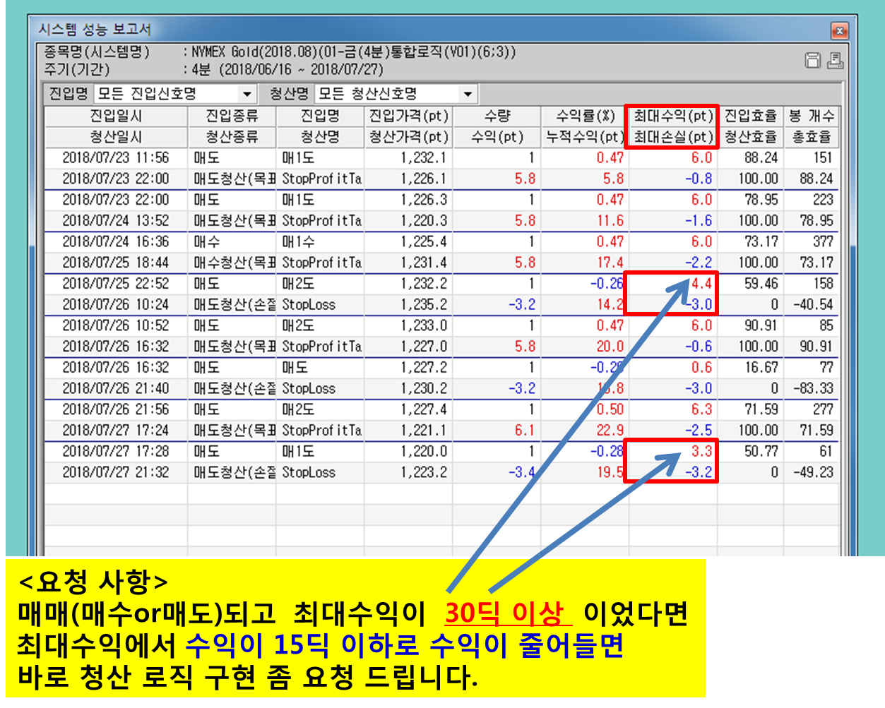 > 제목 : 매도 로직(2건) 요청 드립니다.