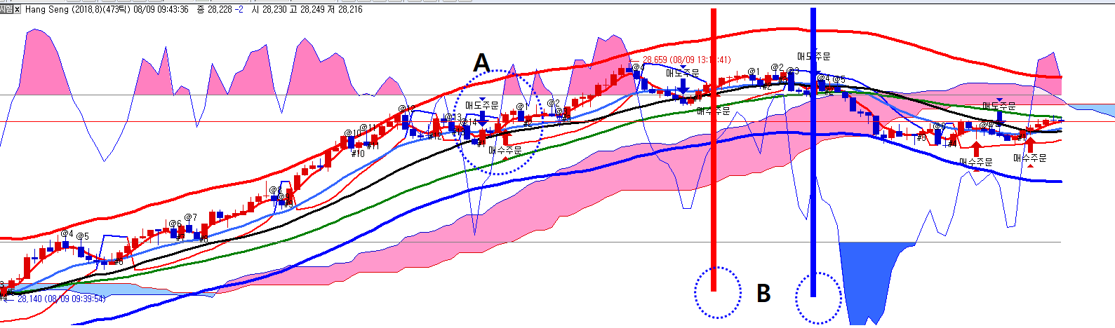 화면에 직접 표현이 안된다면 보조지표로 만든 후 화면에 지표 합성을 하는 방식도 가능하지 않을까 하는데 어렵네요 ㅠㅠ