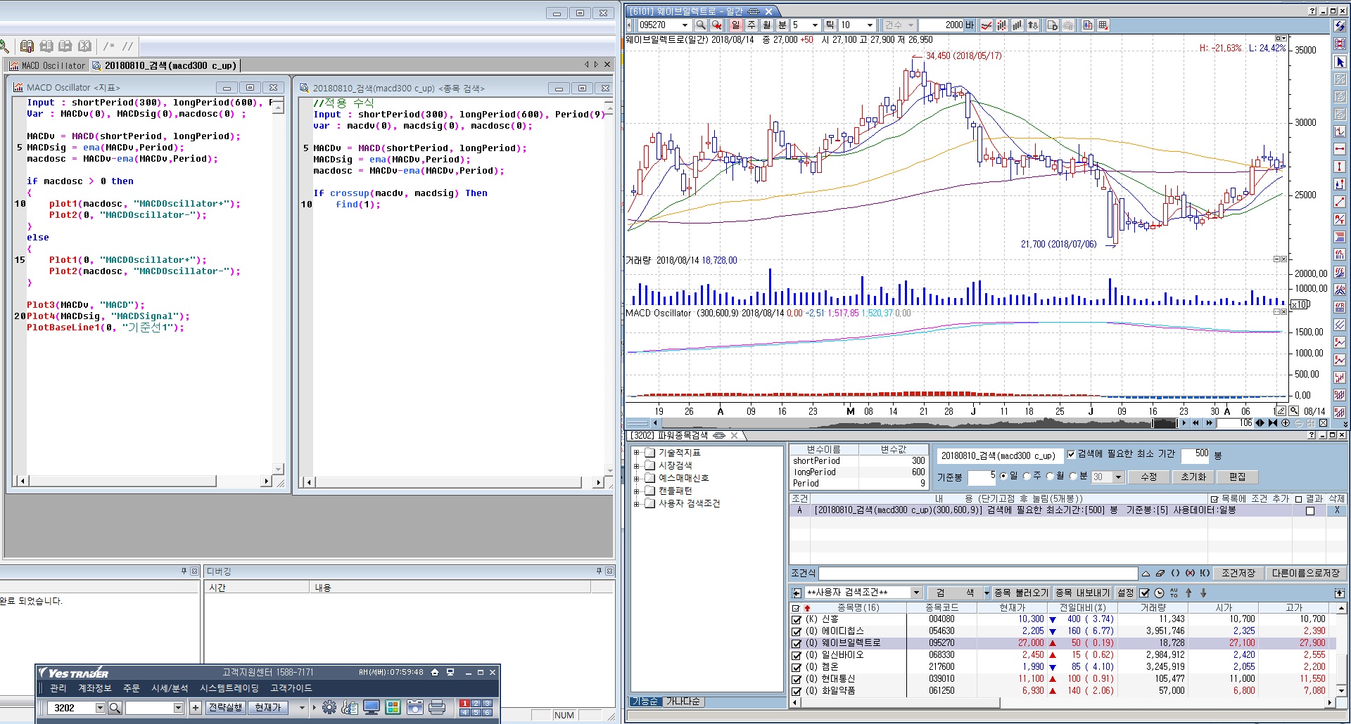 따라서 검색식에서 macd 등에 적용 가능하게 할 수 있는 방법이나, 적용가능한 수치 범위 값등에 대해서 확인 부탁드립니다.