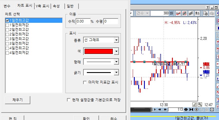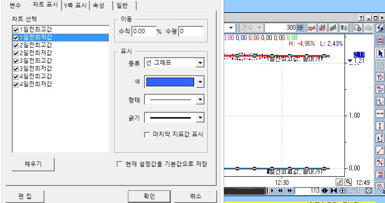 (1) "해당선"의 "챠트표시 항목의 이름" (예: "1일전 최고값" 등)