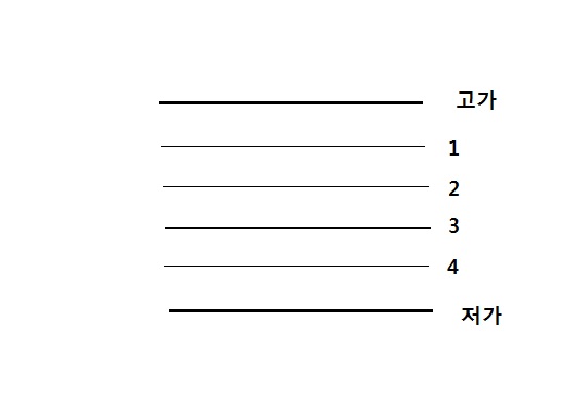 2. 위 고가와 저가선을 5개의 칸으로 나누는 선을 그린다.