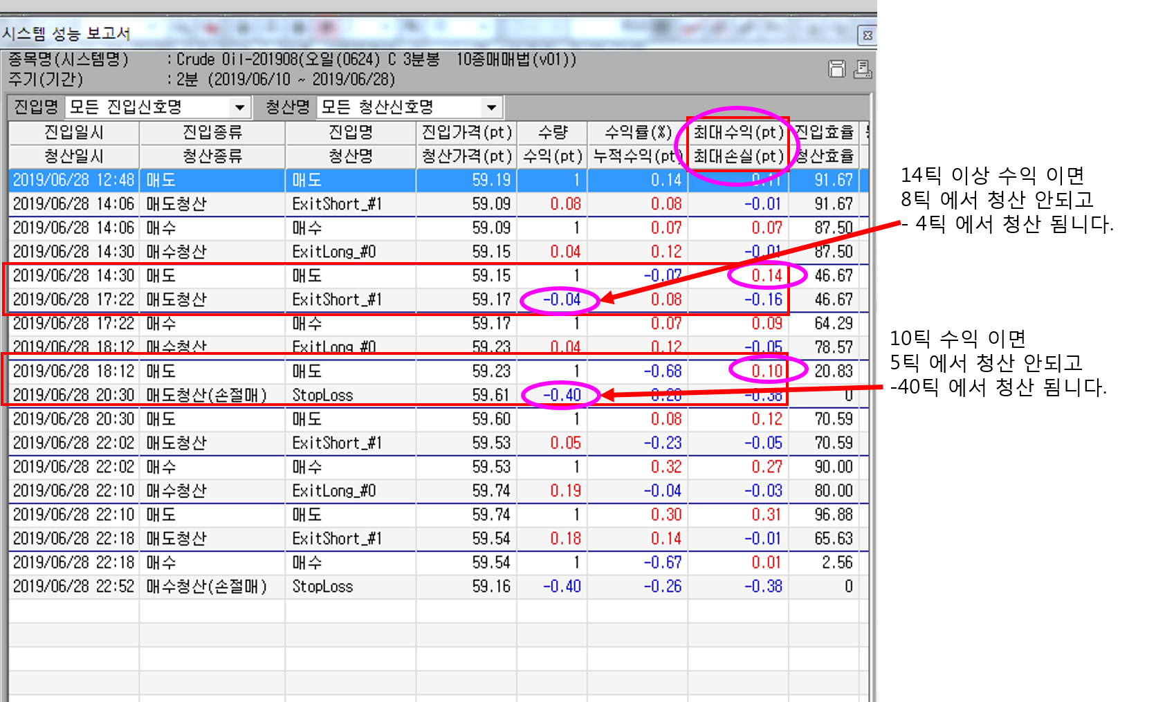 즉 10틱 이상 최대 수익이면 60% 선에서 청산이 안됨니다.
