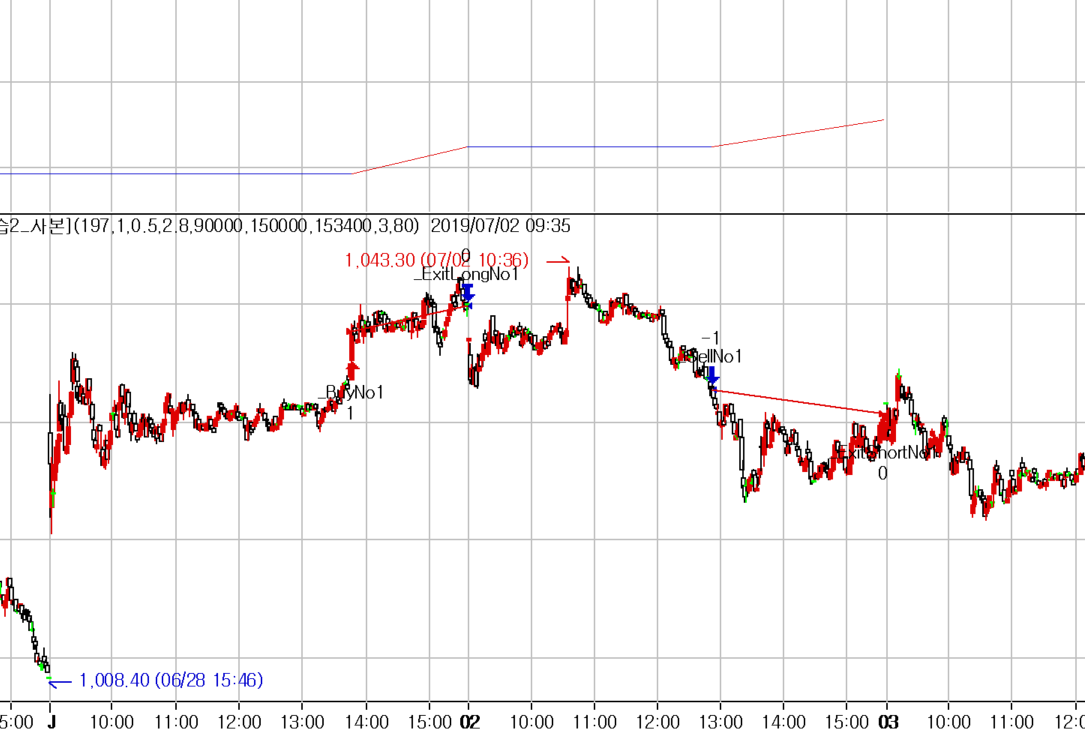 4. 1번 수식도 본수식(특정시간 인트라데이 돌파전략)의 매수 매도 조건을 만약 이전 수익이 특정 수익이상일 때 반대로 (원래 buy 수식이면 sell로, 그러니까 원래는 정방향 진입인데 특정 수익이 발생한 다음 매매에서는 역방향 진입)하는 거였는데 트레일링 스탑에만 있네요.