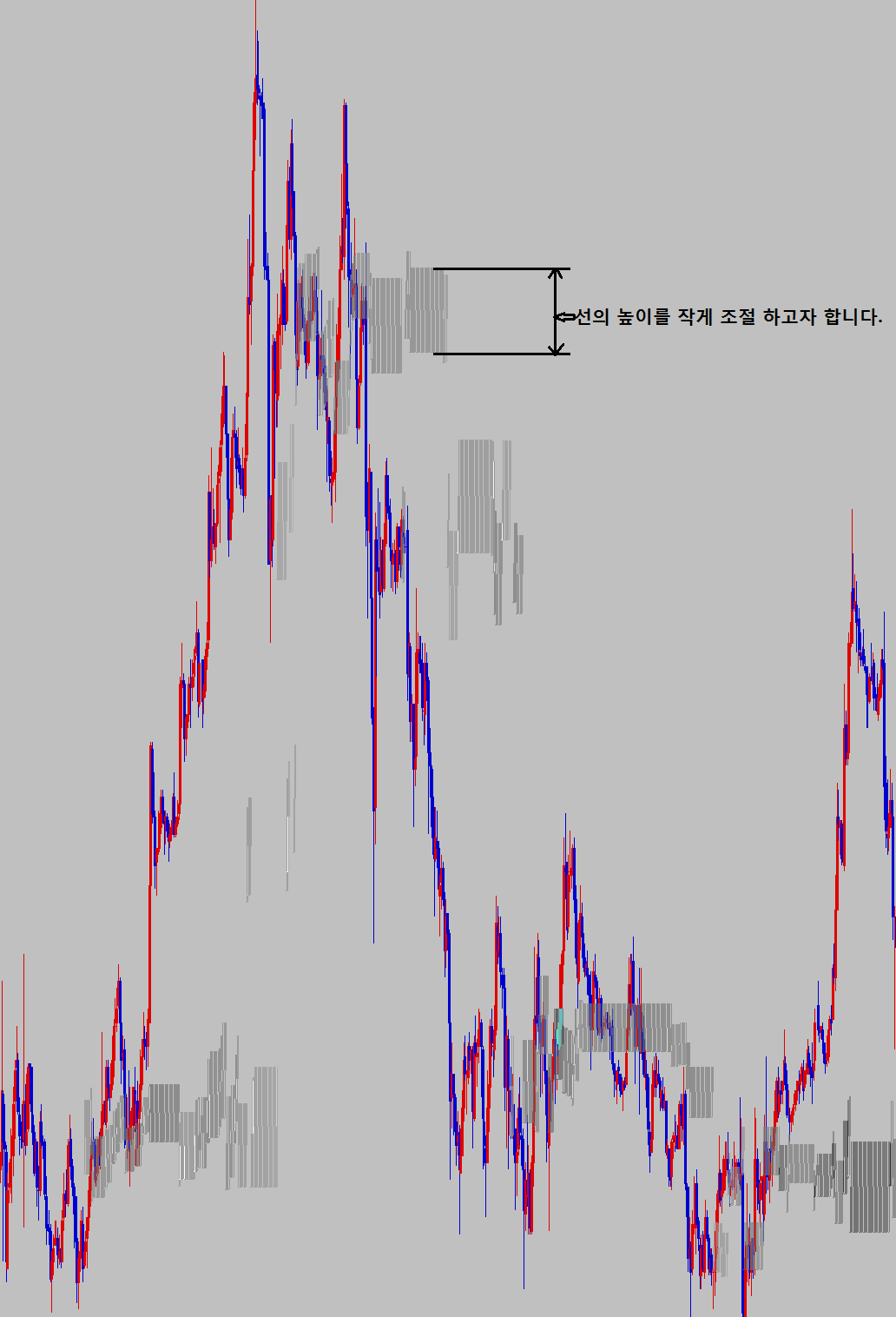 해당폭은 가격입니다. 매물대개수를 크게하시면 좁아지게 됩니다.