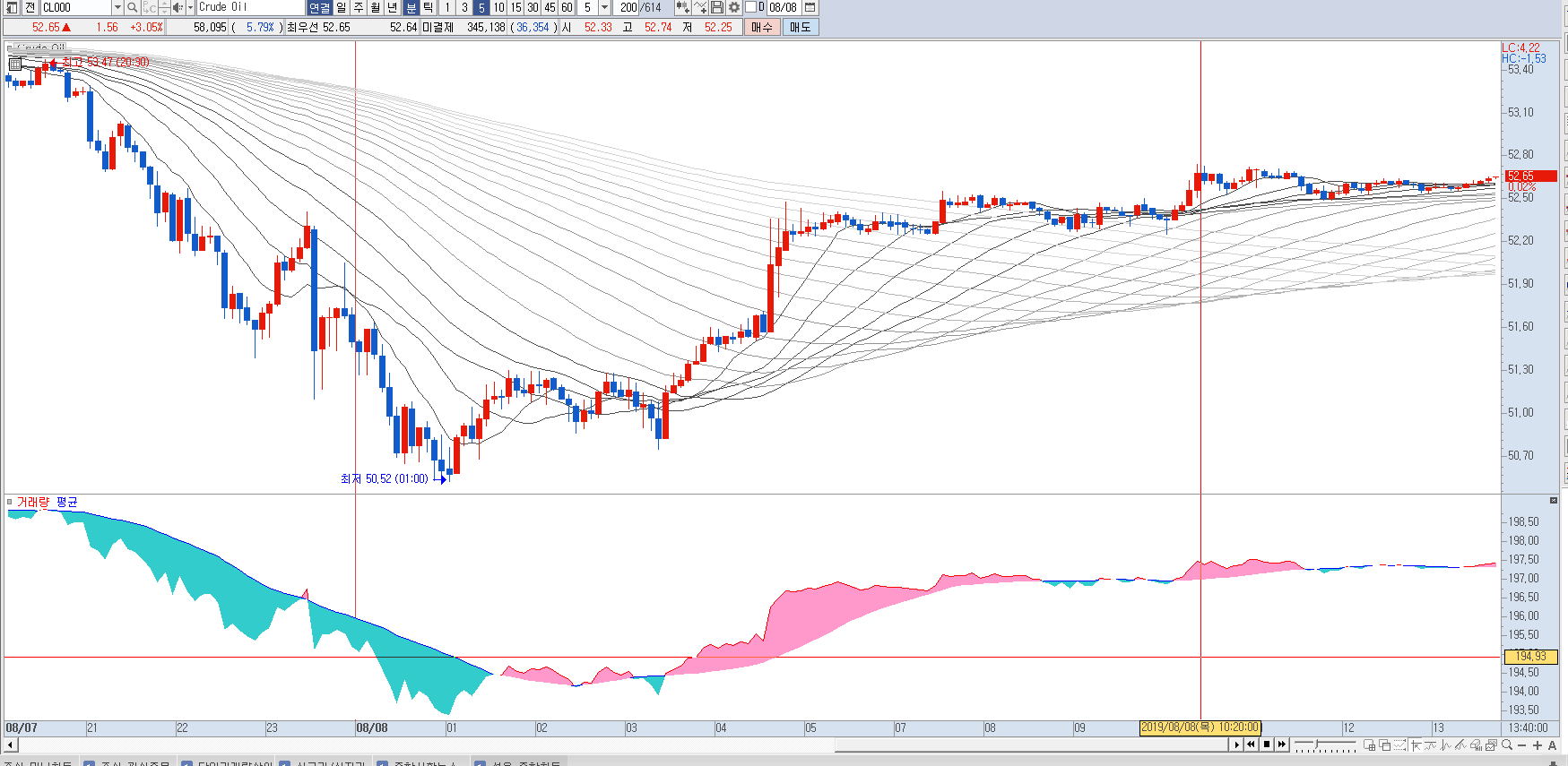 지표속성창의 차트표시탭에서 채우기 기능이용해 직접 설정하셔야 합니다.