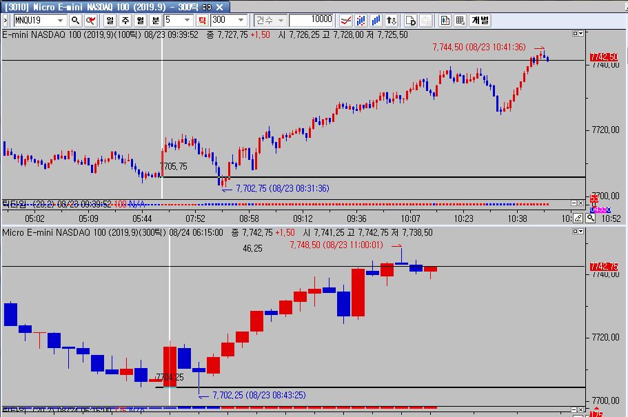 그림처럼 항셍은 종목이 같은데 100틱과300틱 시가 가격이다르게 나옵니다