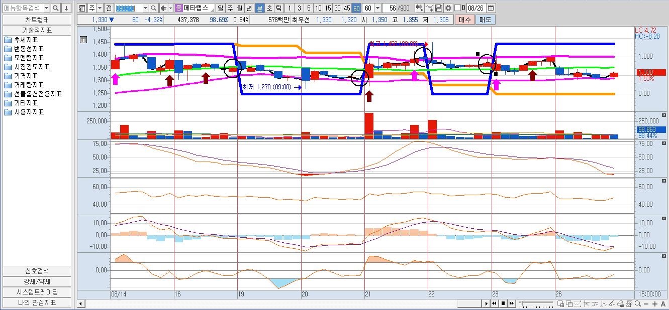 첨부하신 그림은 매일 마지막봉 기준으로 해당봉을 기준으로는