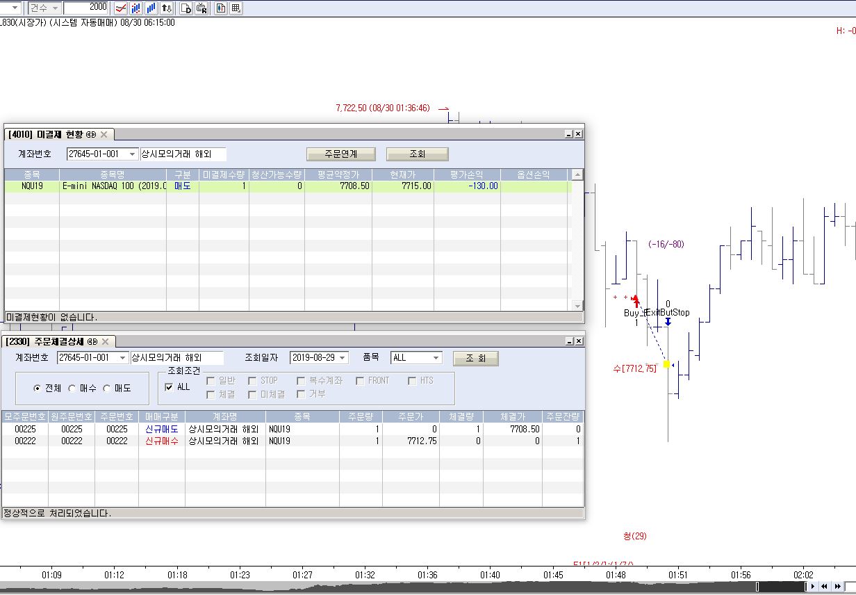 매수 청산을 하면서 매도 체결이 되었습니다.