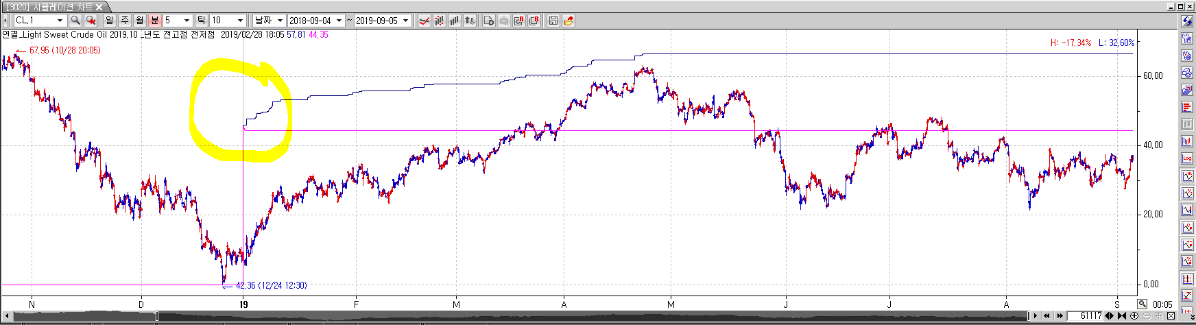 > 하이투자선물 크루드오일을 보고 있습니다.