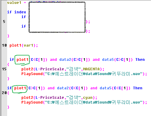 그림과 같이 임의로 만든 지표 plot1 이 data2 와 data5