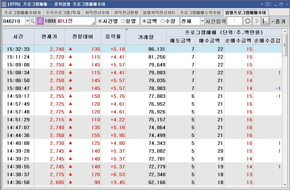 검색 조건에 종목일별 프로그램 순 매수 순 매도 현황을 추가 하고 싶은데요