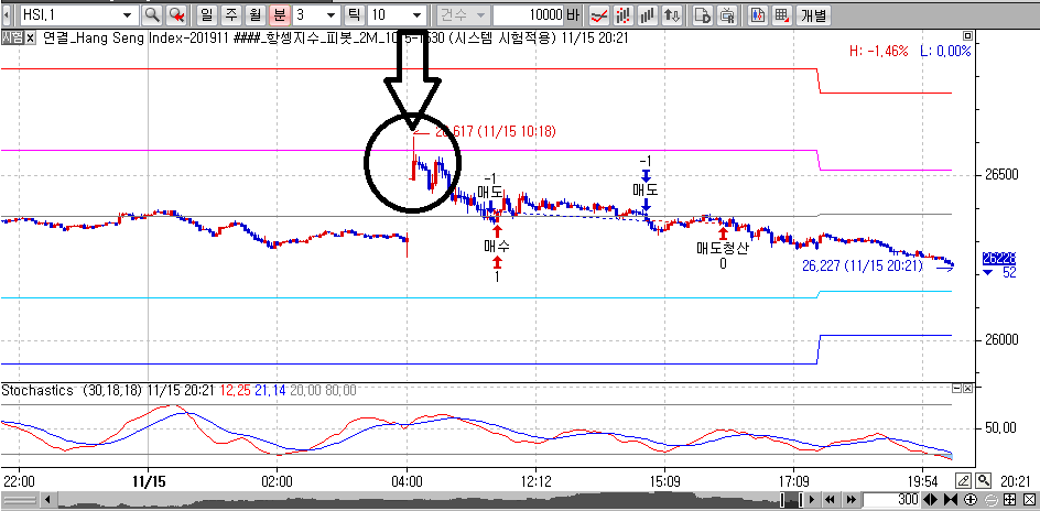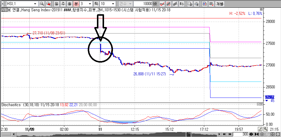 항셍지수선물 챠트에 적용하였구요.