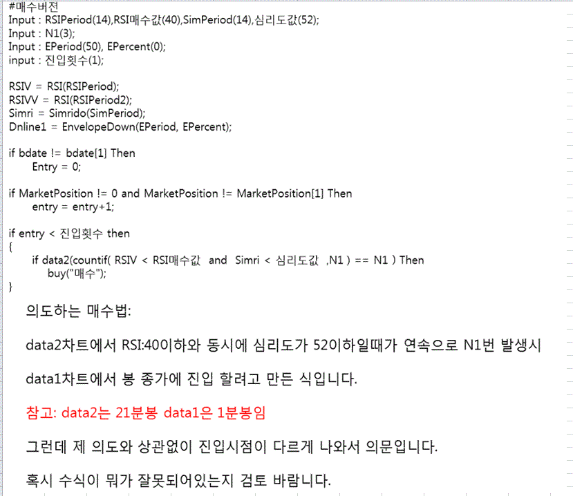 분명히 진입 시점이 제 의도와 완전 달르게 진입되고있습니다.