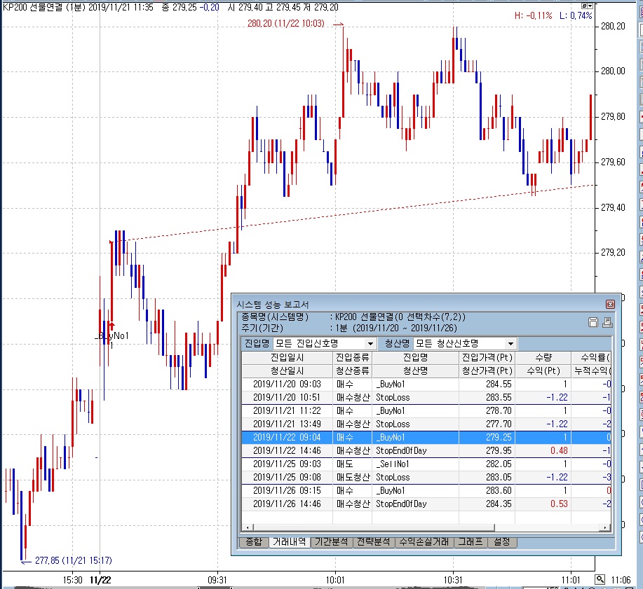 두번째(차수) 발생흔 7틱이상의 봉이 양봉이면 매수, 음봉이면 매도