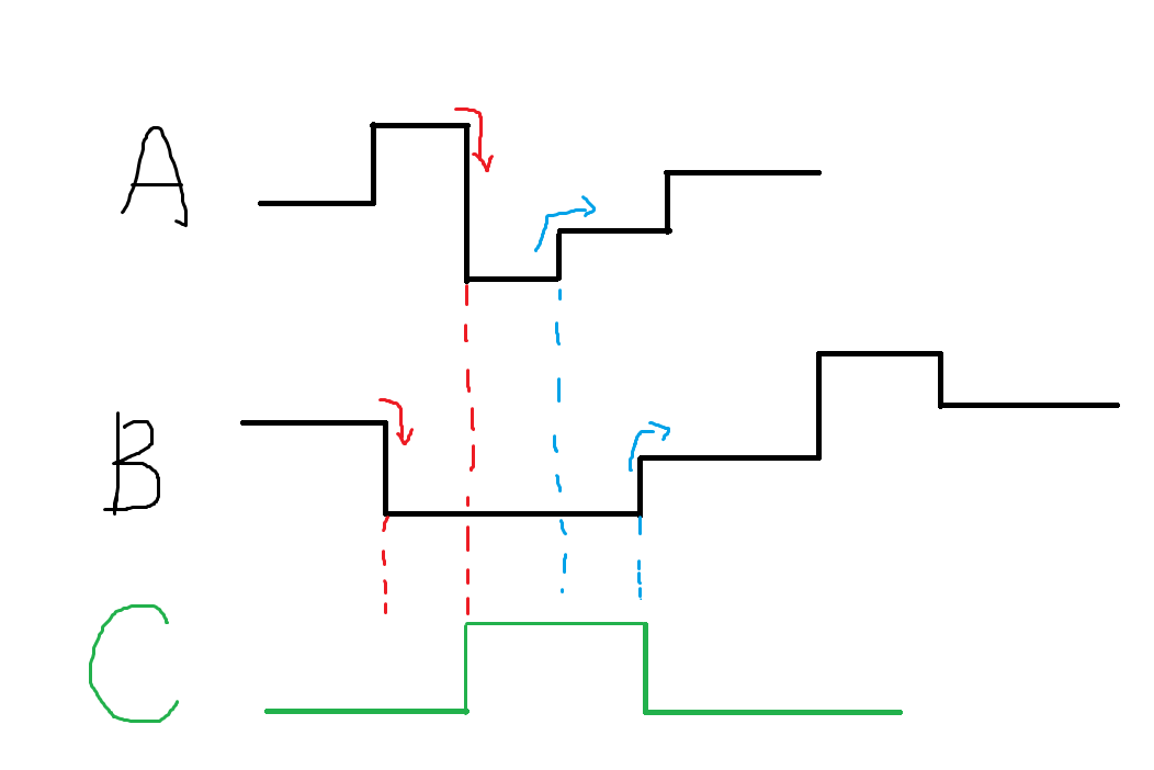 A, B 하강엣지 가 둘 다 발생 했을때,