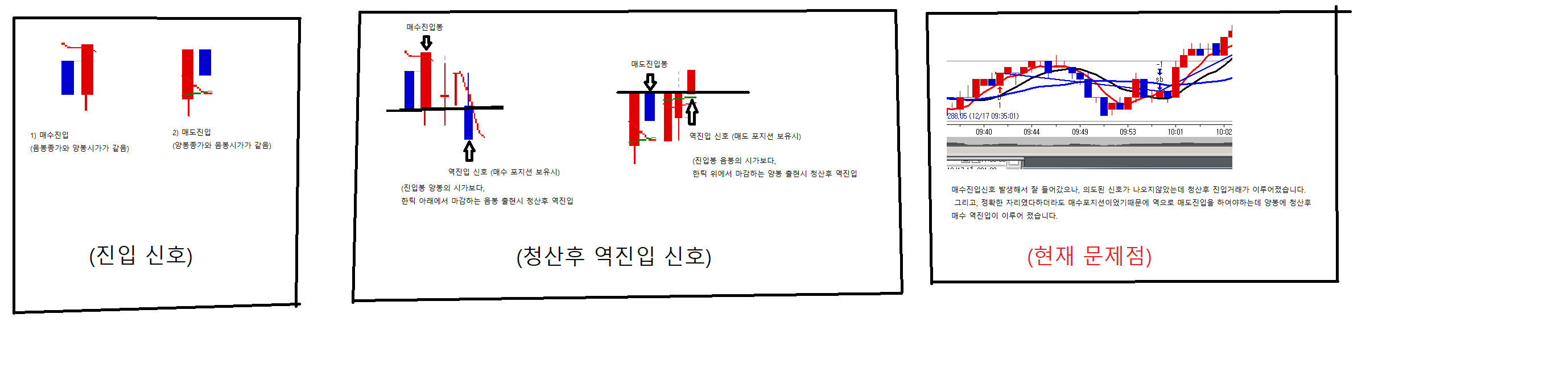 매도후 매수봉이 시가와 현재봉의 시가가 같고