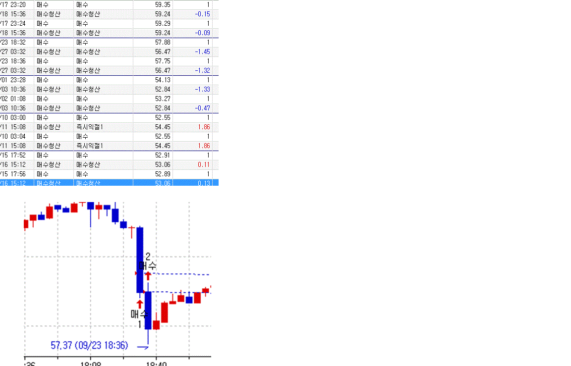 보니까 1차 매수는 조건에 만족하는 중간봉일때 매수가 되고 2차매수는 그다음봉에 매수가 되어 버리는 것 같네요..
