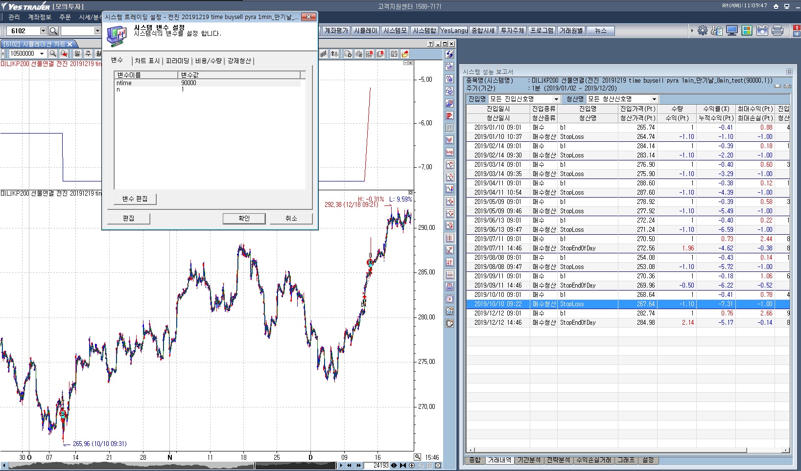 첨부파일은 미니선물 1분차트입니다.