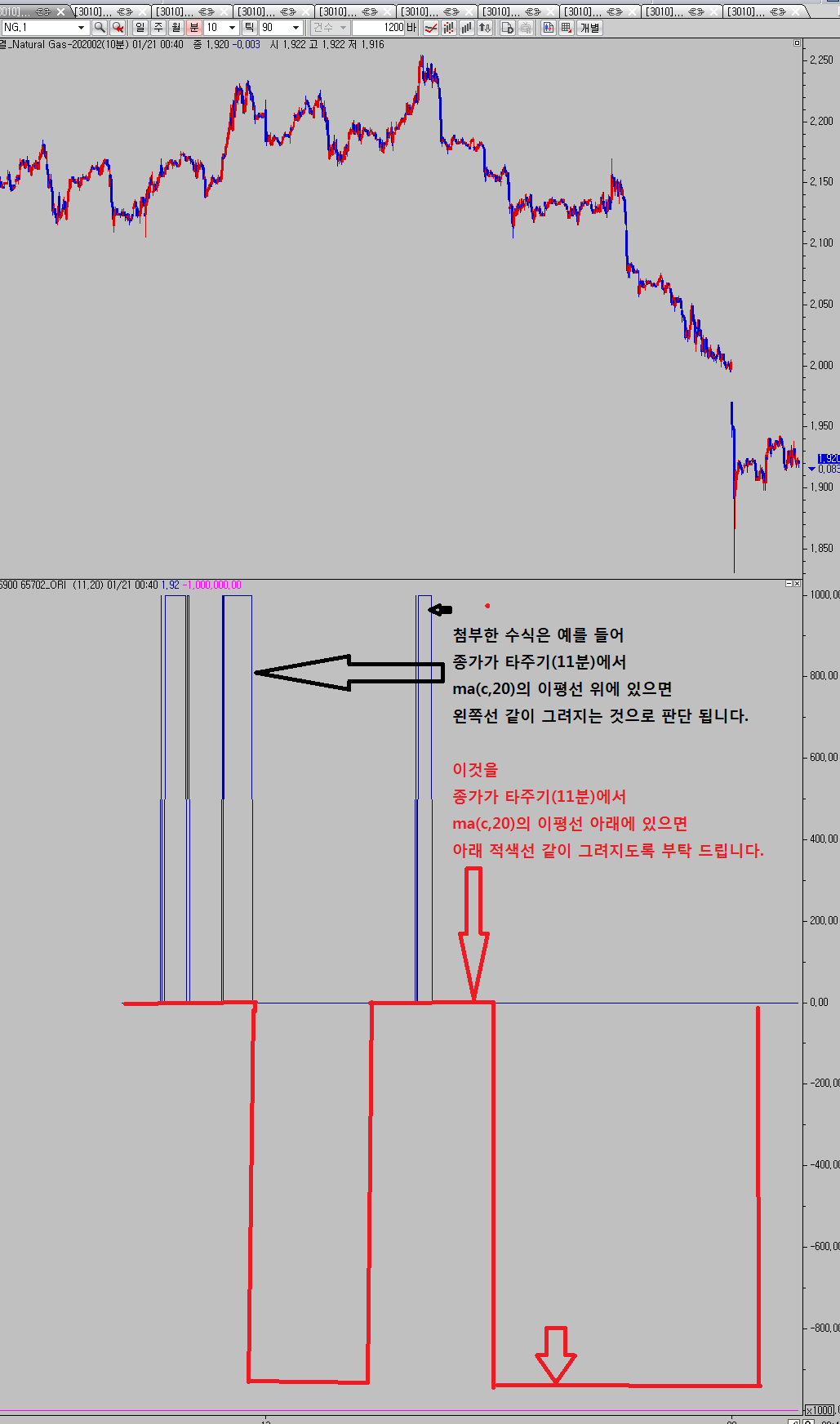 타주기 이평보다는 크면 1 아니면 -1을 그리는 식을 작성해 드립니다.