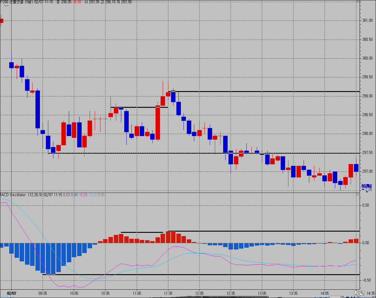 > 안녕하세요...MACD지표에서 오실레이타 당일고점 당일저점 라인이