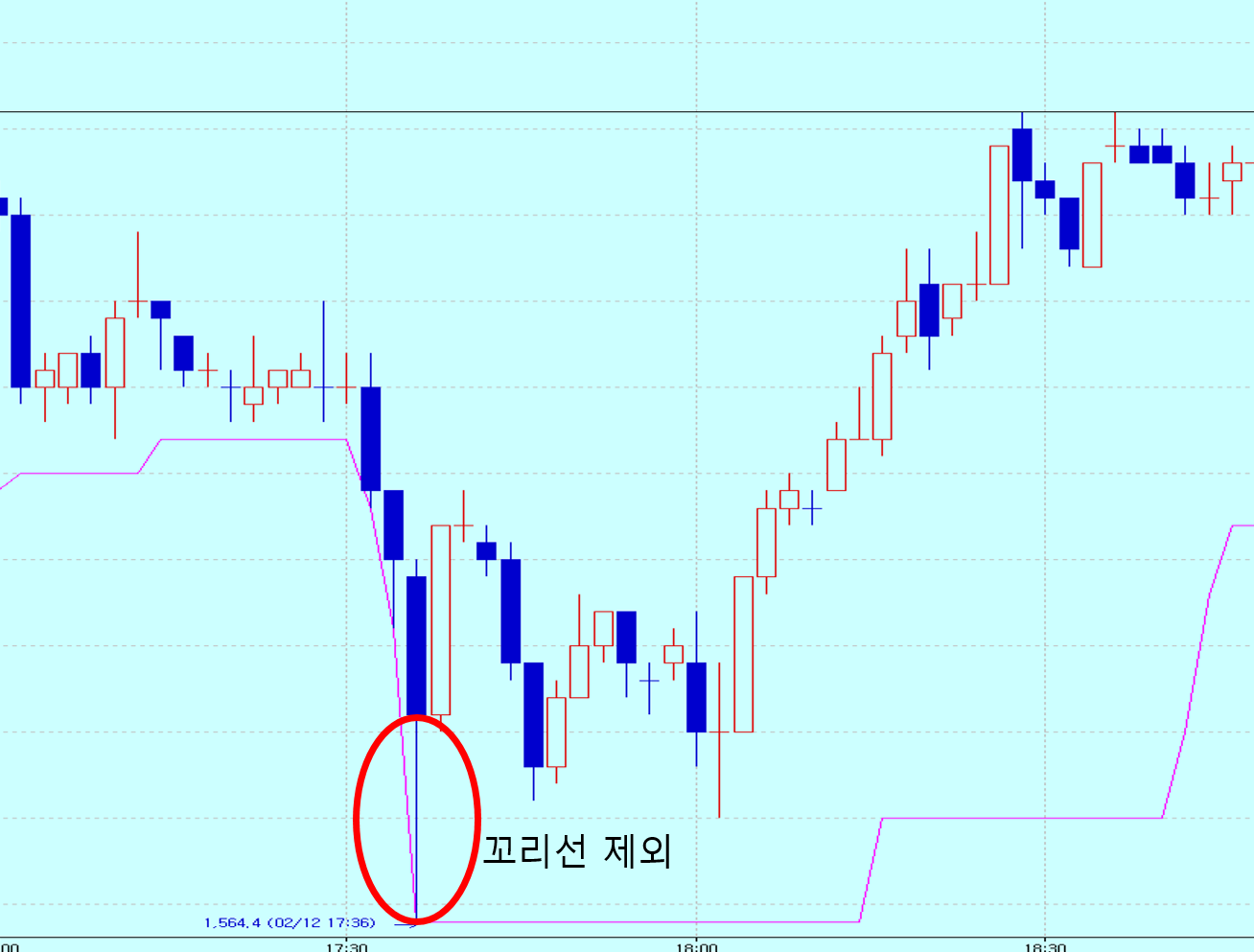 일경우 분봉에서 갑자기 꼬리가 길어서 선이 아래로 가는데 이것은 빼고 표현 하고 싶습니다.
