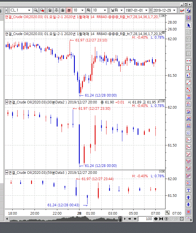 30분봉과 60분봉은 참조데이타로 선택해 차트에 추가한 후에