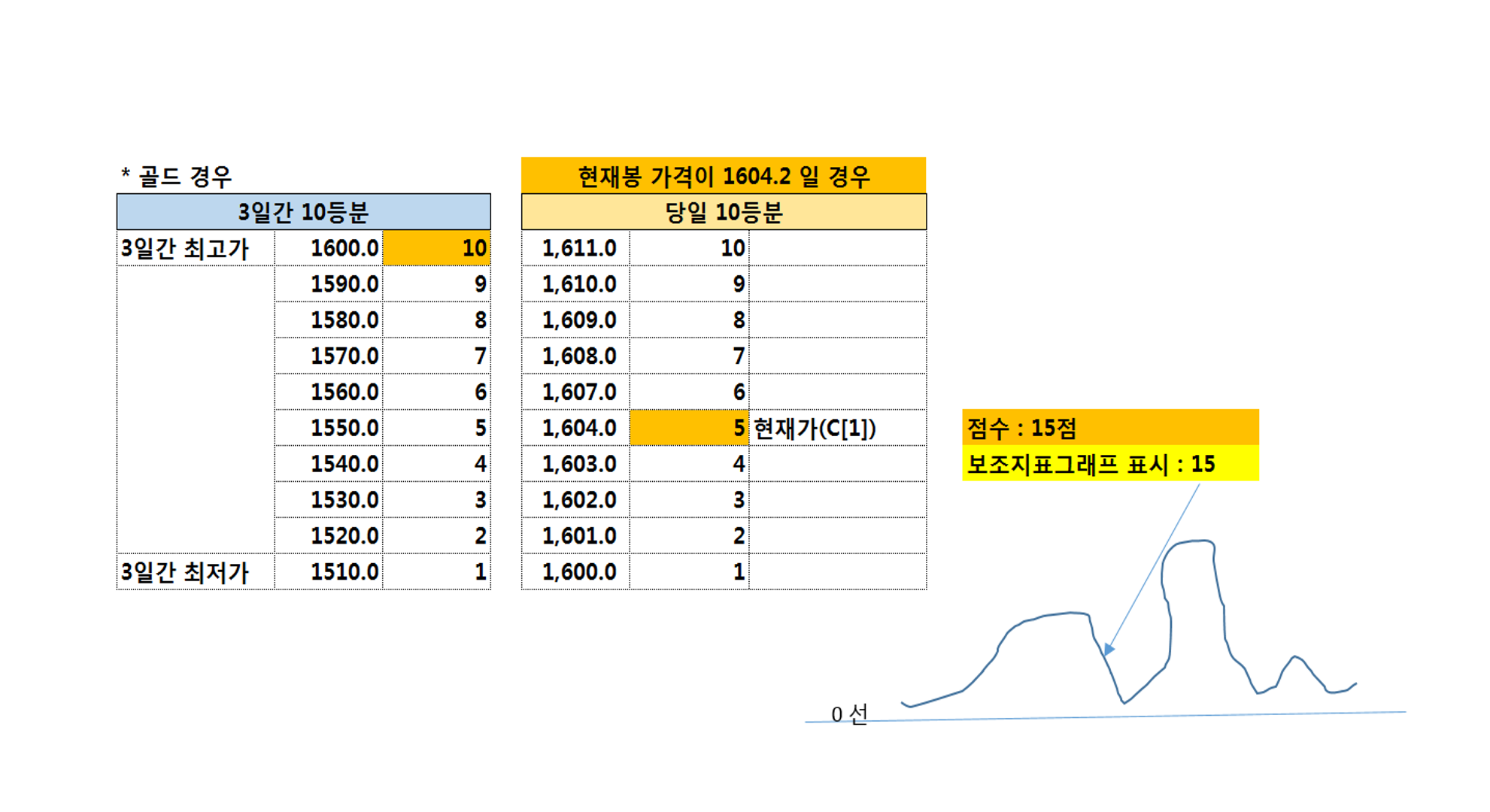 최고가격 에 속하거나 or 3일간 최고가 보다 크면 10점 만점 <그림참고>