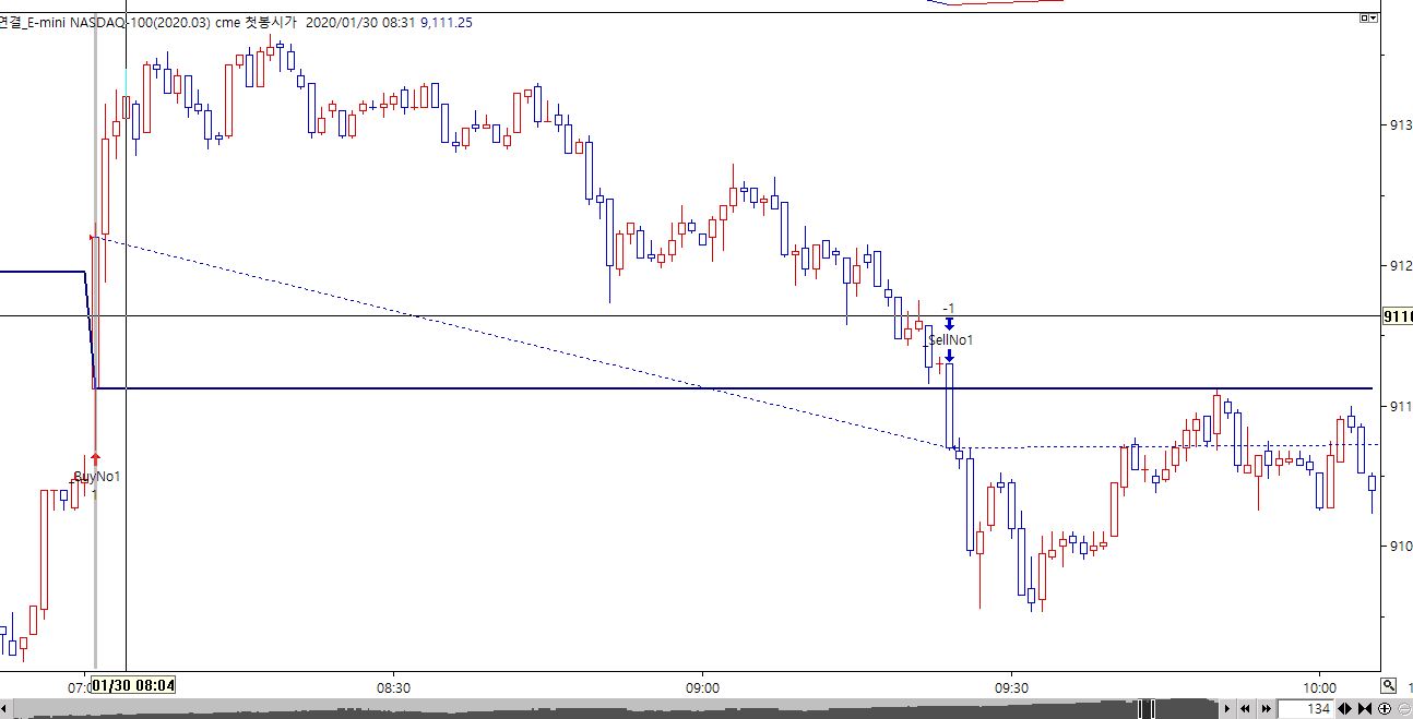 첫봉 c>o면 매수, 첫봉 c<o면 매도