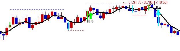 참고로 첨부파일에서 보이는 점선이 같거나 높으면 매수 같거나 낮으면 매도 입니다