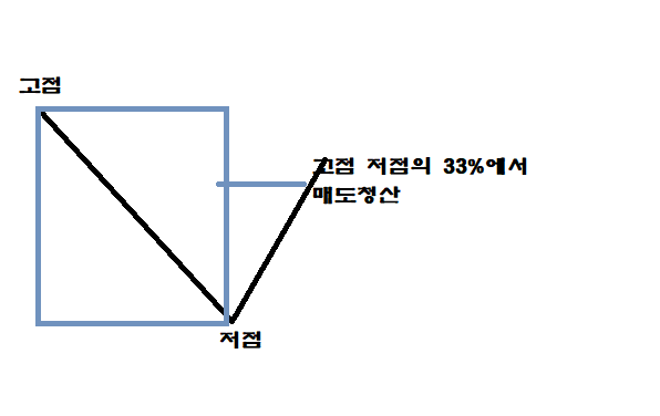 피보나치조정대를 활용하여 당일 매도진입 후 당일 고점과 저점의 33%(0.33) 지점에서