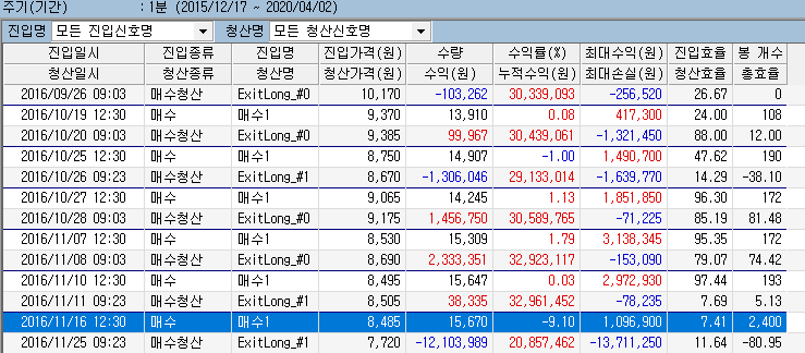 매수가 조건에 의해 하루에 한번 같은 시간에 진입을 하고