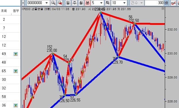 직전고점과 현재저점이 몇틱차인지 표시합니다.