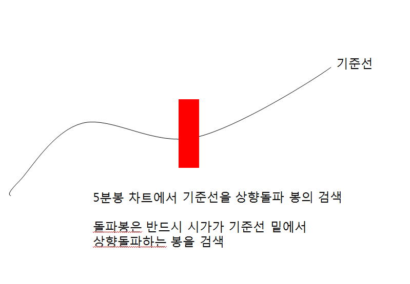 분봉차트에서 기준선 돌파하는 종목을 검색하는 수식을 알고 싶습니다.