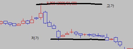 이때의 고가 저가를 출력하고 싶습니다.