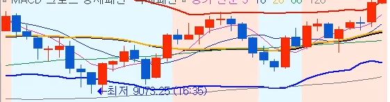 2. 이동평균선중 5일선 방향에 따라 차트 바탕색깔 설정