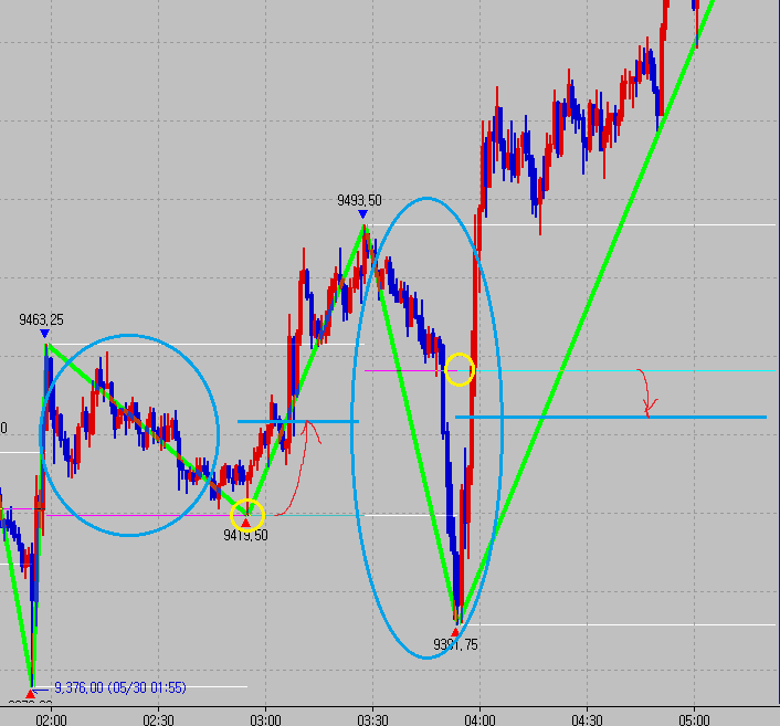 첨부한 차트와 같이 하락파의 중심이 아닌 상승 파동의 중심인 TL2[6]가