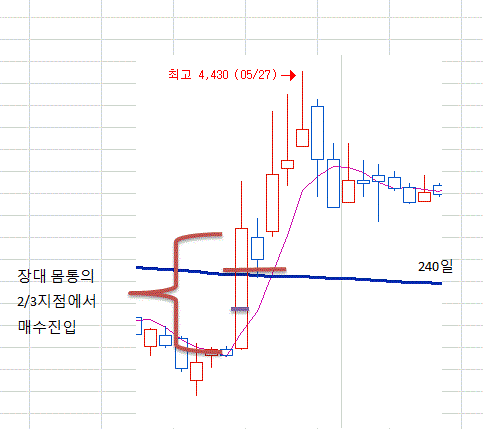 (3) 해당 장대양봉시 일봉기준 240일평균이평 돌파
