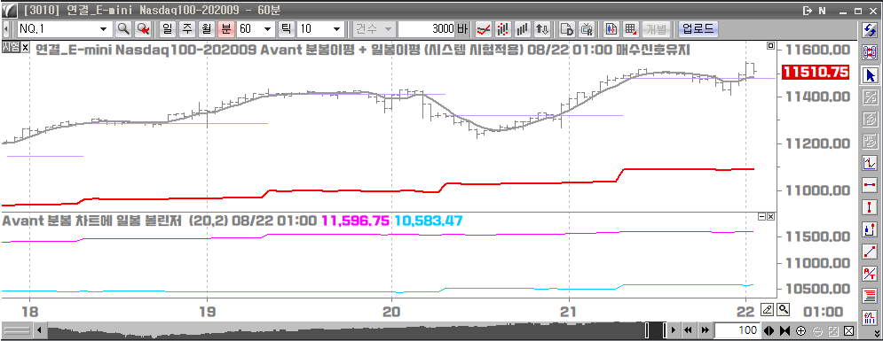 > 게시판 68807번으로 분봉 차트에 일봉 볼린저 밴드를 표시할 수 있는 수식을 요청했는데요, 보내주신 답변대로 수식을 넣었더니