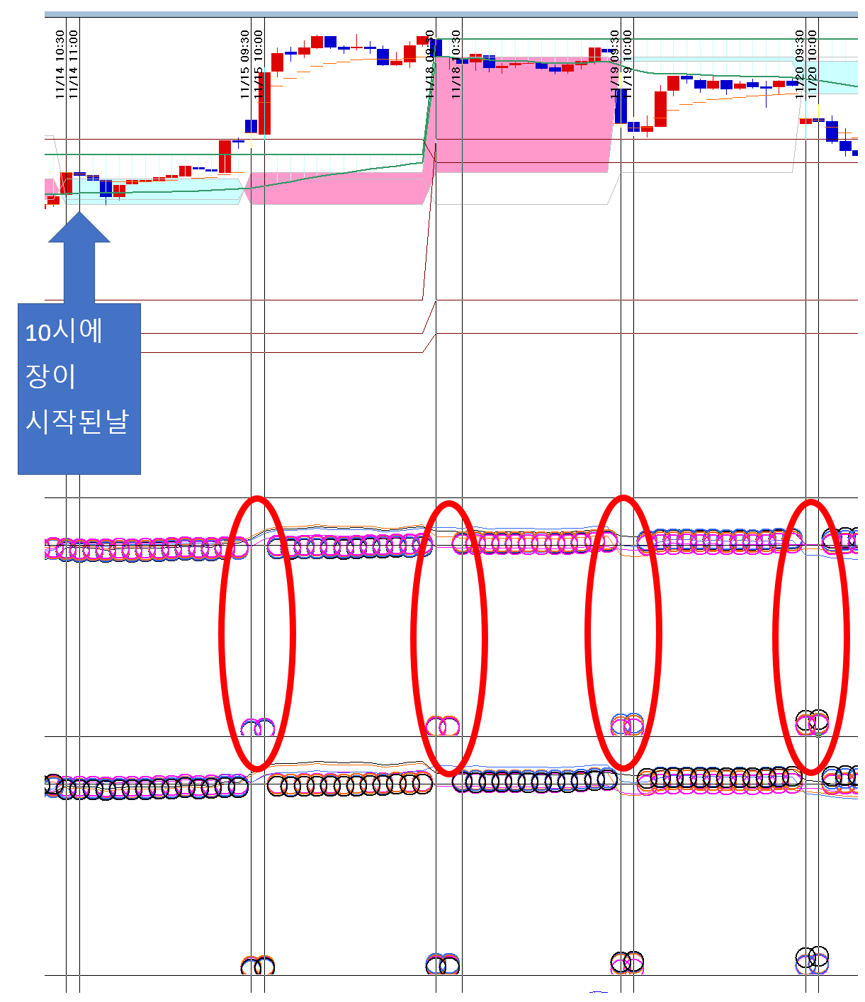 아마도 수식에 시간기준으로 전일기준흐름을 잡고 평균을 잡아서
