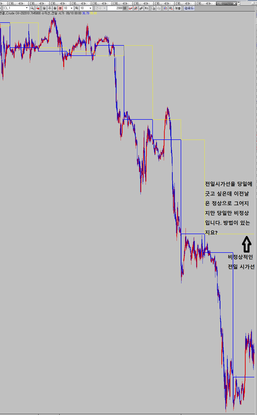 dayopen(1)이 일봉에서 값을 가져오는데 데이타에 오류가 있는 것 같습니다.